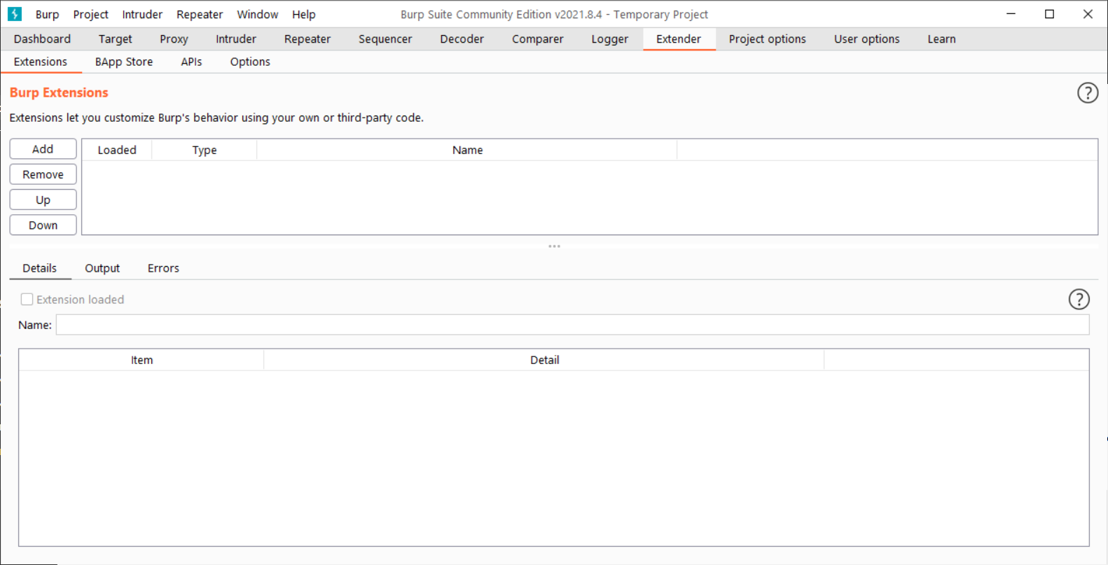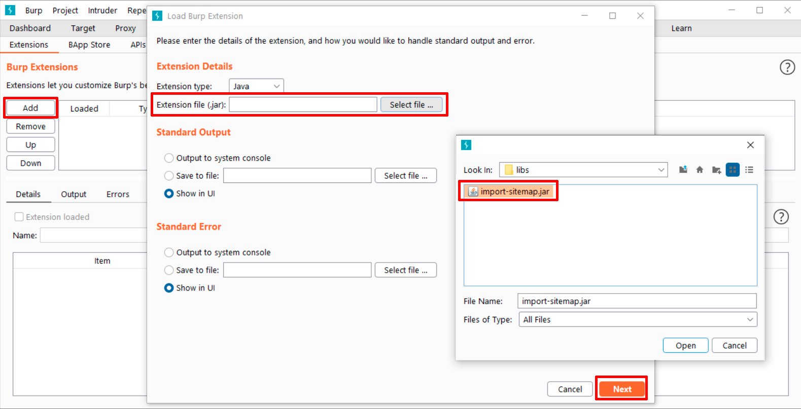 Нажав на кнопку Add, откройте окно добавления плагина в Burp Suite.