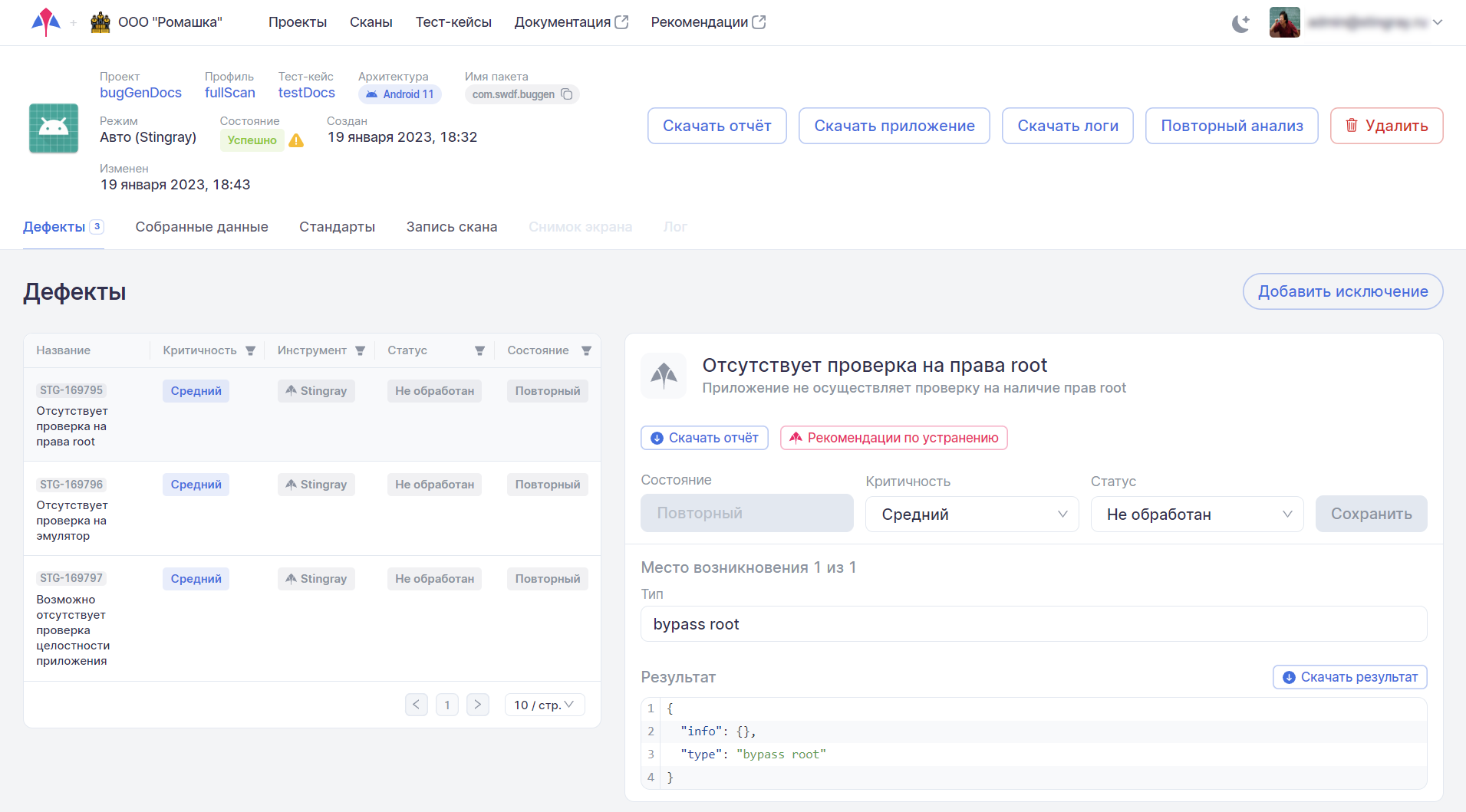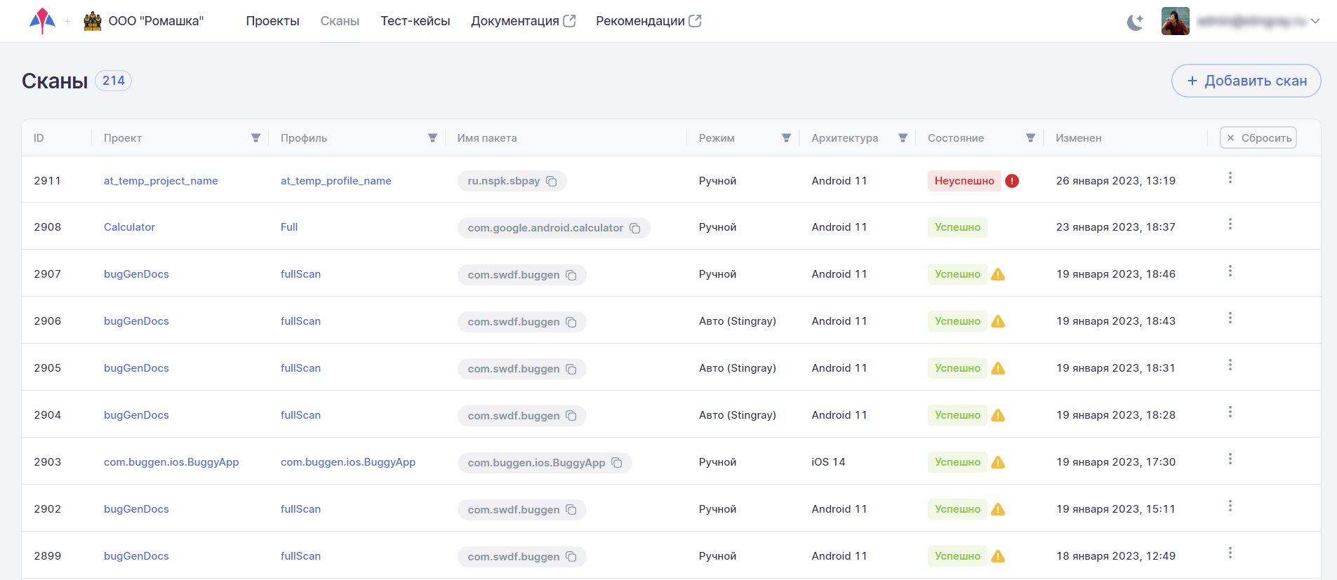 Нажав на ID соответствующего сканирования, перейти на страницу с результатами.