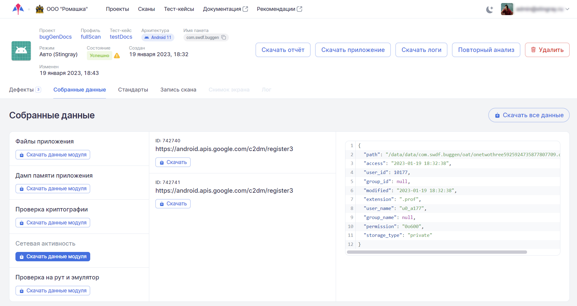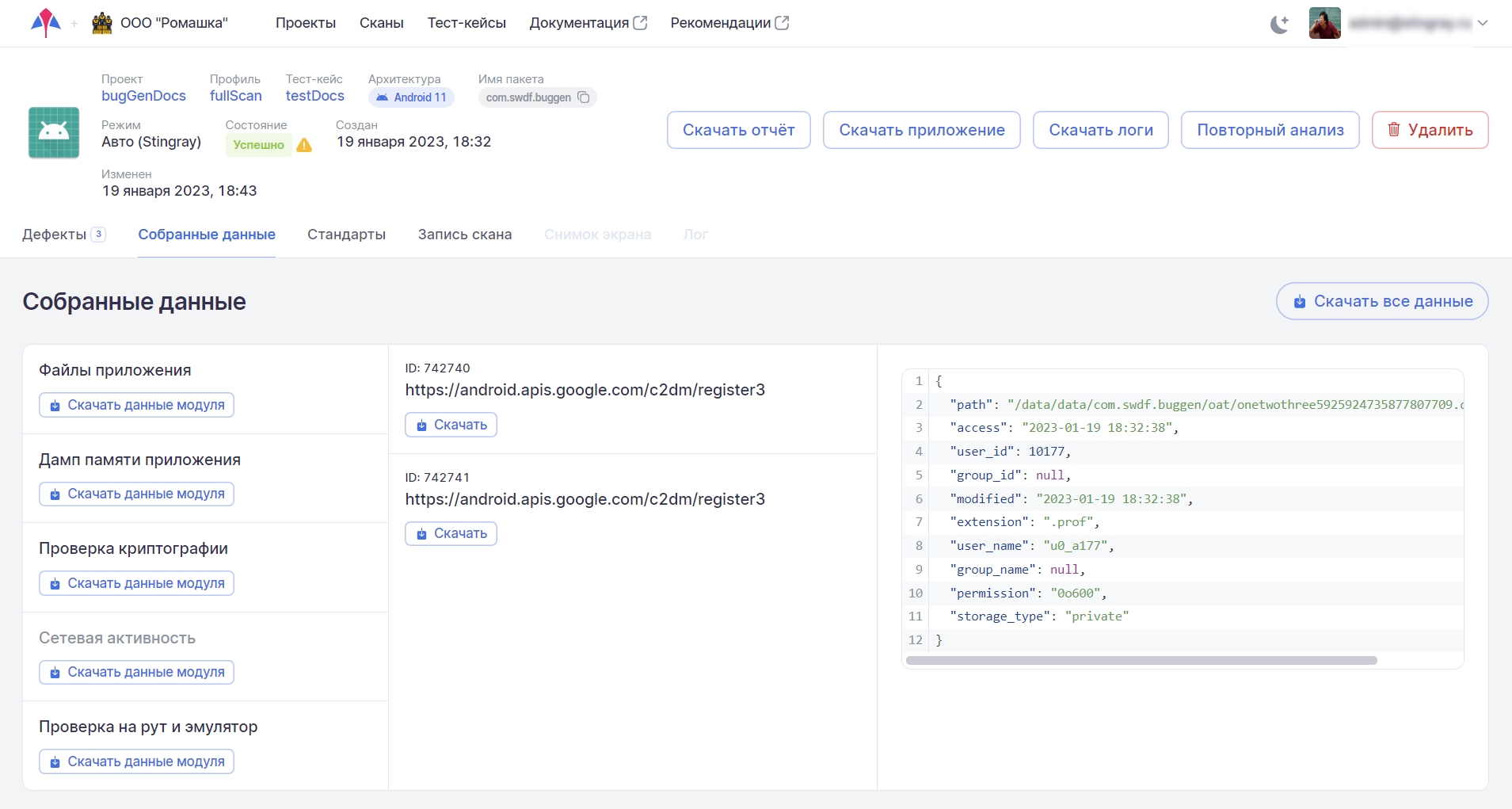 Нажмите на кнопку Скачать данные модуля, чтобы скачать zip-архив с результатами работы модуля.