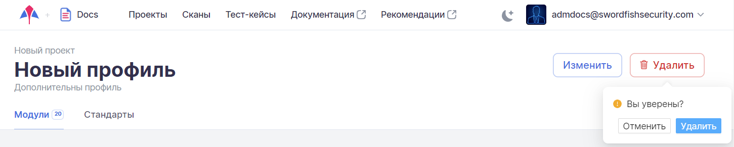Чтобы удалить профиль, нажмите на кнопку Удалить справа вверху и подтвердите это действие нажатием на кнопку Удалить в появившемся диалоговом окне.