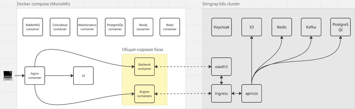 Необходимо настроить сетевую инфраструктуру таким образом, чтобы монолиту были доступны следующие ресурсы: